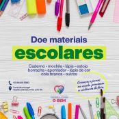 Doe: caderno, mochila, estojo, borracha, apontador, lápis de cor, cola branca e outros